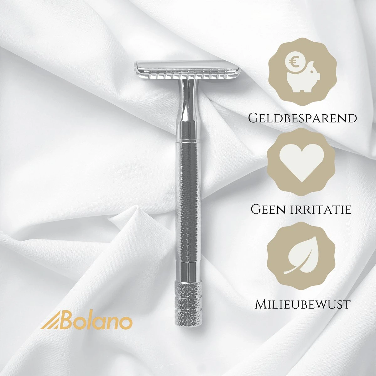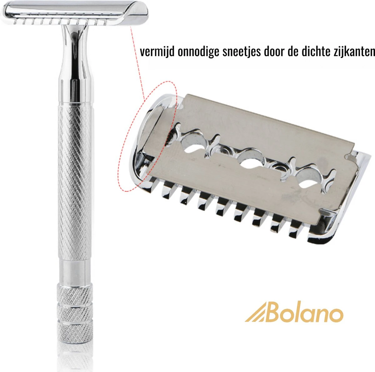 - Inclusief 30 RVS double edge scheermesjes en houder