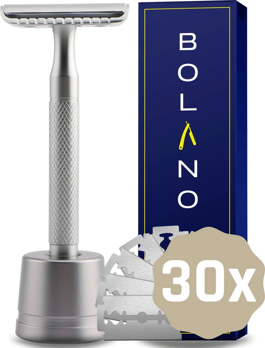 Alle Bolano safety razors zijn voorzien van een luxe verpakking met maar liefst 30 RVS double edge scheermesjes. 30! Daar ben je het komende jaar zeker zoet mee.