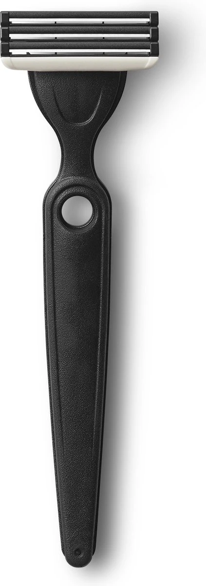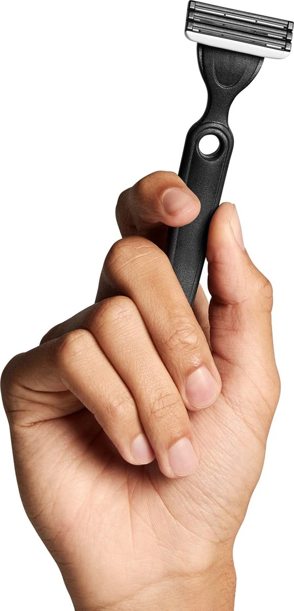 • Gemakkelijk spoelen: De ruimte onder de drie mesjes is ruim voldoende, zodat het scheermes na meerdere halen niet verstopt raakt en makkelijker is schoon te spoelen.