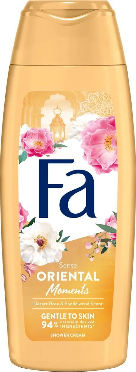 Ontdek Fa Oriental Moments douchegel met de geur van woestijnroos en sandelhout. De vegan formule bevat 94% ingrediënten van natuurlijke oorsprong (incl. water).