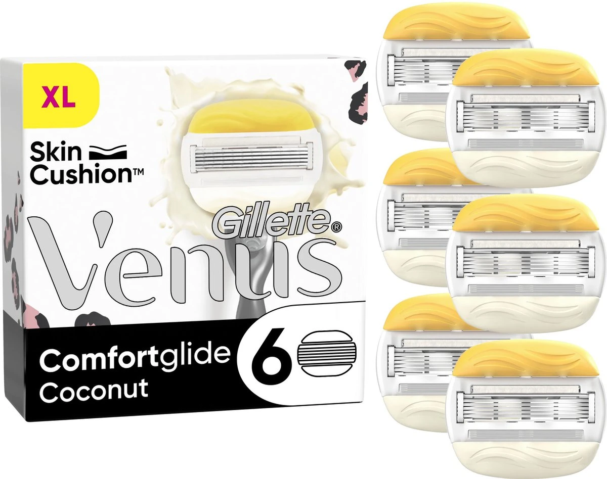De Gillette Venus Comfortglide Coconut navulmesjes voor vrouwen hebben 5 mesjes voor een gladde, zachte scheerbeurt met langdurig resultaat en zijn ontworpen voor het vrouwelijk lichaam. De navulmesjes zijn uitgerust met strips die lichaamsboter met een lichte kokosgeur afgeven, voor glijding en comfort. Met een flexibel ontwerp dat zich aan je lichaamscontouren aanpast. Elk Venus navulmesje past op elk Venus scheersysteem (behalve Simply Venus en Venus + Satin Care Voor Huid en Schaamhaar).
