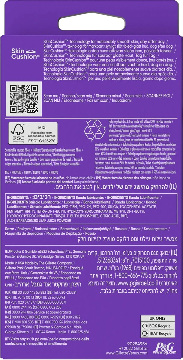 - 50% meer bescherming*: Venus SkinCushion-technologie helpt de huid bij elke scheerbeurt te beschermen tegen scheerirritatie *na één maand vs. Lubrastrip zonder SkinCushion
