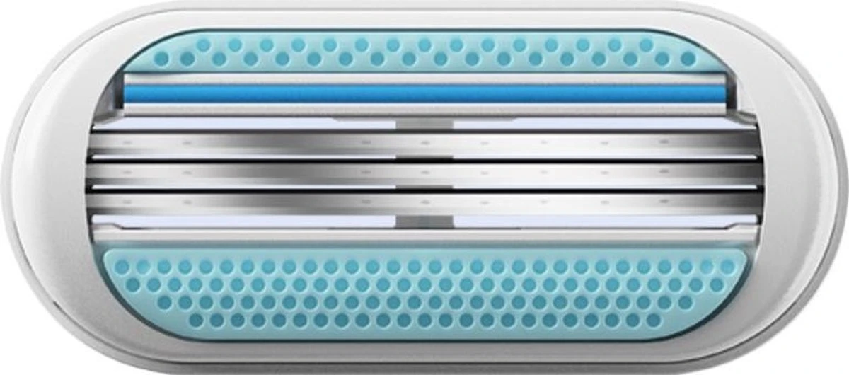 3 mesjes en beschermende kussentjes, voor een soepele en gladde scheerervaring met elke beweging.