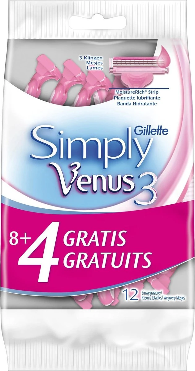 Simply Venus 3 wegwerpmesjes combineren de schoonheid van Venus met het 3-voudig scheersysteem dat elke ronding aan kan en de eenvoud van een wegwerpmesje van de allerbeste kwaliteit