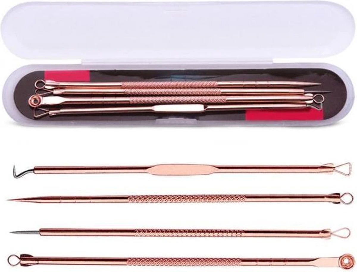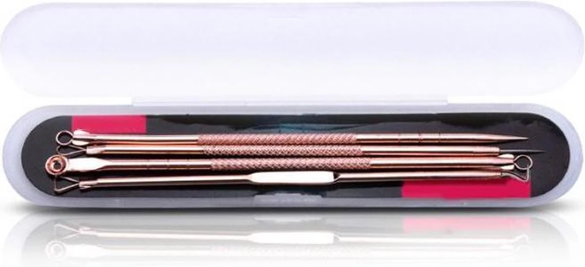 Vrijwel iedereen heeft wel eens last van een verstopte porie. We hebben ze liever niet en met behulp van deze 4-delige comedonen lepel set kunt u ze het beste verwijderen! Met deze set houdt u uw huid eenvoudig en zonder risico van verdere onsteking (wat je wel hebt als je met je nagels een puistje of mee-eeter weghaalt) schoon en gezond! Neem de compacte set mee in uw handtas en je kunt altijd en overal stralen.