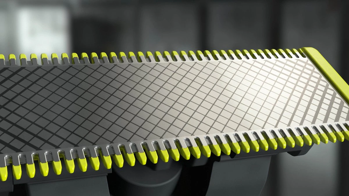 De Philips OneBlade heeft een revolutionaire nieuwe technologie die is ontworpen voor de styling van gezicht- en lichaamshaar. De OneBlade kan haar van elke lengte trimmen, scheren en stylen. Dankzij het dubbele beschermingssysteem – een glijcoating en afgeronde uiteinden – wordt scheren gemakkelijker en comfortabeler. Het scheerapparaat heeft een snelbewegend mesje (200x per seconde), wat zeer effectief werkt, zelfs bij langere haren.