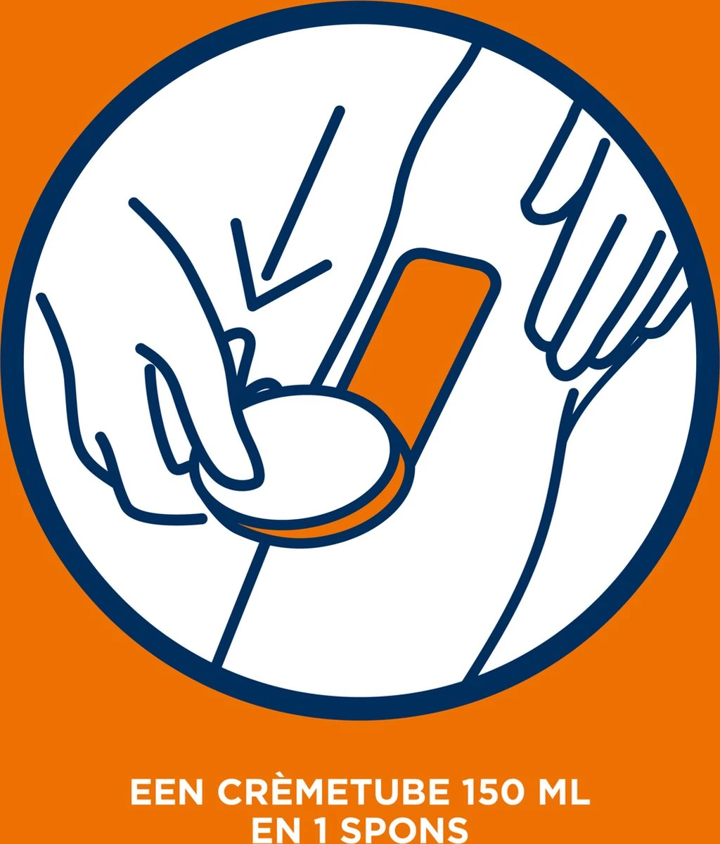 - INHOUD: Deze verpakking bevat 1 creme tube 150ml en 1 spons.