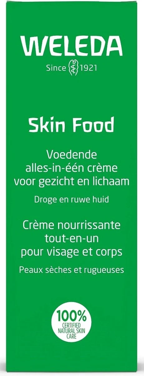 Skin Food is een 100% natuurlijke alleskunner. Deze intensief voedende crème herstelt de barrièrefunctie van de huid en vermindert jeuk en een trekkerig gevoel door droogheid. Kalmerende biologische plantextracten van driekleurig viooltje, kamille en Calendula vormen het hart van de formule. Skin Food zorgt voor een zichtbaar verbeterde huid die weer zacht en glad aanvoelt. Skin Food is dankzij de krachtige werking al jaren favoriet – ook bij celebs en visagisten.